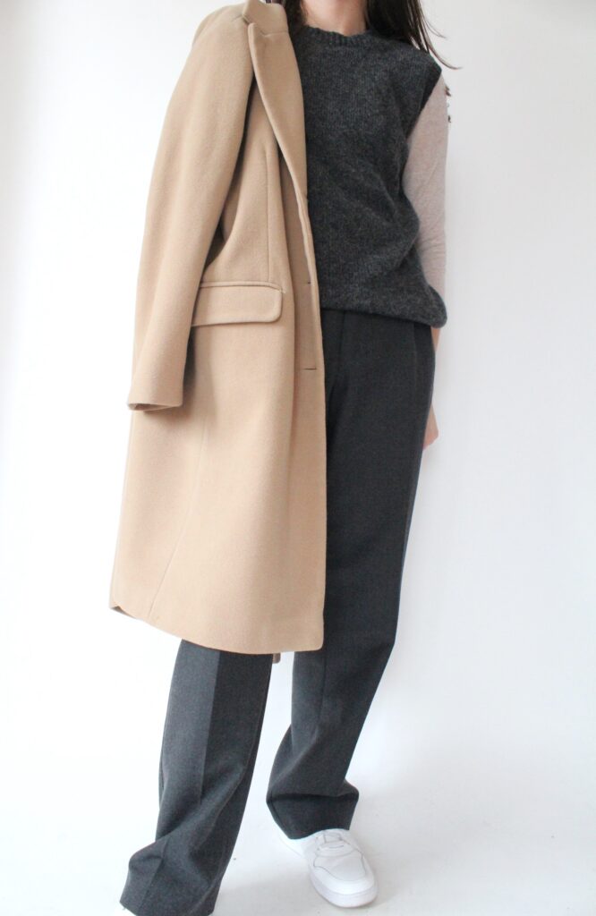 Wełniane spodnie Melka, bezrękawnik z kaszmiru , long z lyocellu i kaszmiru Intimissimi, płaszcz z wełny i kaszmiru