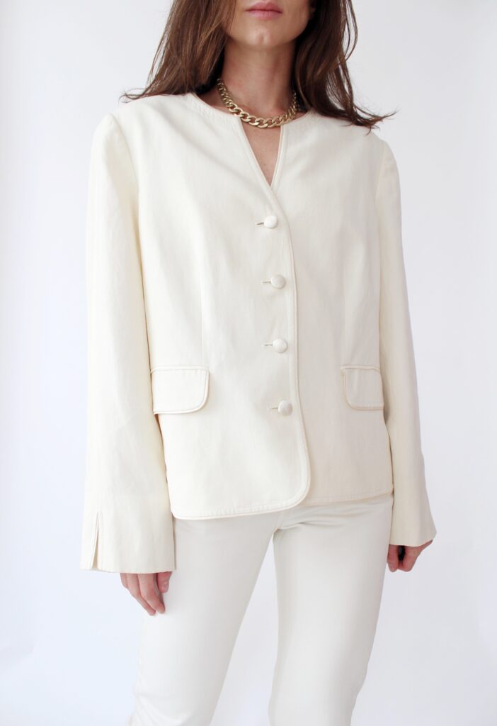 Marynarka z lnu i jedwabiu, jeansy firmy Arket