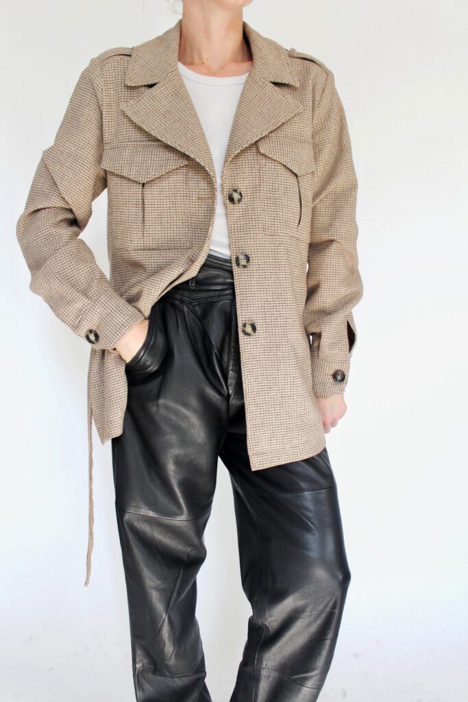 SPODNIE Z NATURALNEJ SKÓRY, KURTKA Z WEŁNĄ DUŃSKIEJ PROJEKTANTKI MODY JULIE FAGERHOLT